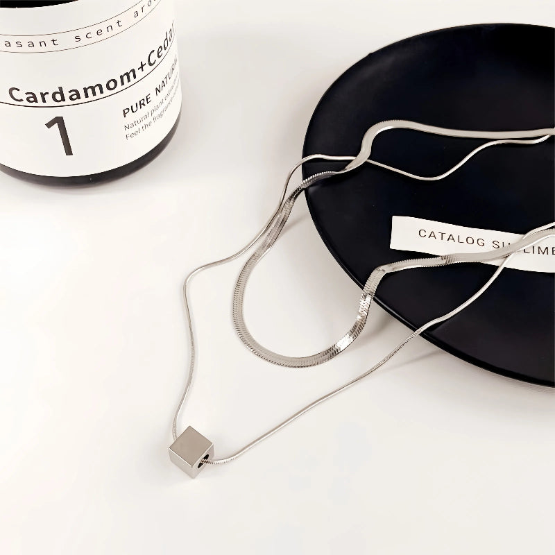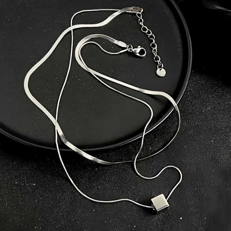 Double chain necklace is stunning! Customizable cube is adorable, quality beyond expectation. Perfect gift 🎁.