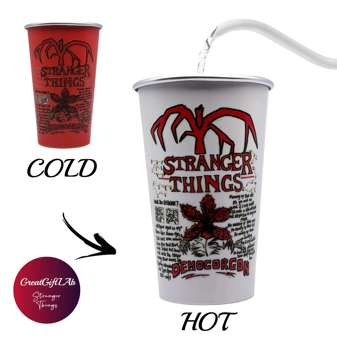 Bring the "Upside Down" directly into your reality. These aren't just cups; they are portals. When filled with a cold drink, they maintain a menacing, blood-red hue. But pour in your hot coffee, and witness a miraculous transformation: the red fades, revealing a pristine white canvas. The "Upside Down" Edition: You’ll see the iconic silhouette of the party on their bikes, with the massive Mind Flayer looming over them. Beneath them lies the inverted world, featuring Demodogs and Will trapped in the Upside Down. The "Lore & Demogorgon" Edition: Reveal the full terror of the Demogorgon (and the flower face), surrounded by frantic clues of an unfolding mystery: the "HAVE YOU SEEN ME?" missing flyer, scrawled notes, eerie Christmas lights, and lyrics of bravery. These mugs are crafted exclusively for STRANGERHEADS, designed to immortalize your deepest fandom memories.