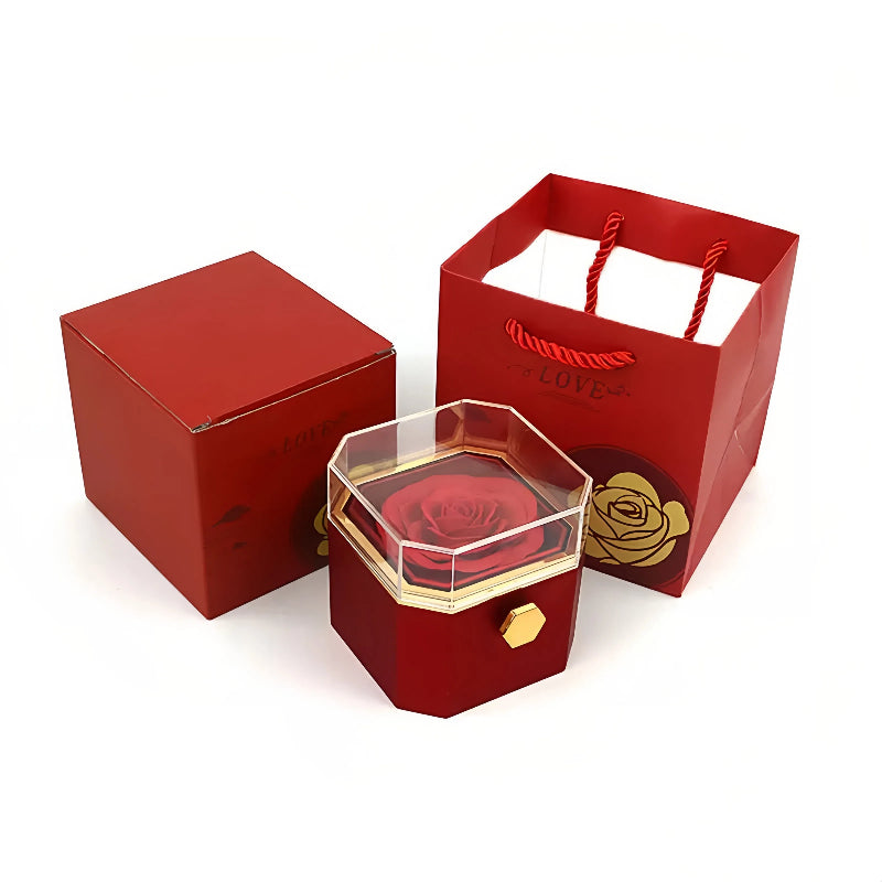 Rotating Forever Rose Octagonal Box - W/ Promise Ring